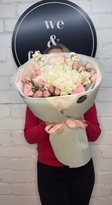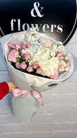 Ніжний букет у рожево-білих відтінках створений, щоб дарувати тепло й турботу. Поєднання троянд і гортензії додає йому витонченості та легкості — ідеальний вибір для романтичного подарунка.