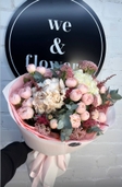 Ніжний букет з півонієподібною трояндою, гортензіями та астільбою — витончена композиція для романтичних і святкових моментів.