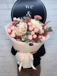 Букет з півонієподібною трояндою, гортензіями та астільбою