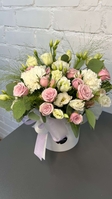 Ніжна квіткова композиція у світлих відтінках, що символізує чистоту й гармонію. Стильне оформлення у коробці додає елегантності — чудовий подарунок для будь-якої нагоди.