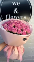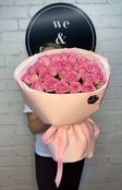 Класичний та витончений монобукет із рожевих троянд — символ ніжності, кохання та вдячності. Ідеальний вибір для романтичного подарунка або знаку уваги близькій людині.